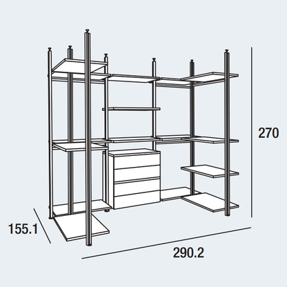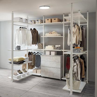 The Natasha 723 Open Wardrobe by La Primavera exemplifies contemporary design and functional elegance. Crafted with precision, this modular unit features anodized aluminum or epoxy-powder coated uprights, showcasing a harmonious blend of durability and aesthetic appeal. The use of high-quality materials ensures longevity, while the sleek design adds a touch of sophistication to any space. This open wardrobe also incorporates a thoughtfully designed drawer unit, seamlessly integrating practical storage solutions into the ensemble.