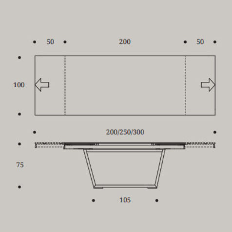 • Dimensions: Fixed: L 200-300 H 75 W 100 cm