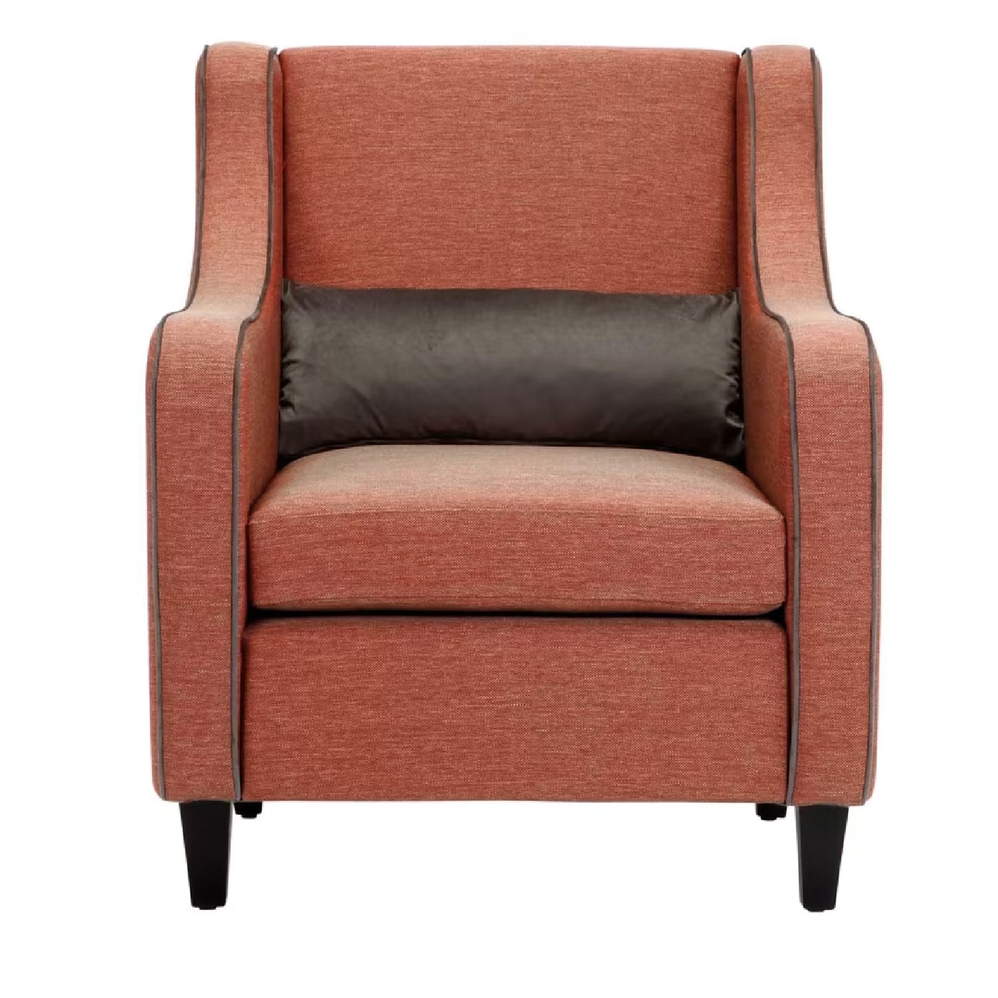 Sink into luxury as the multi-density polyurethane cushions provide the perfect balance of support and plushness. Upholstered in a refined sand-coloured Dacron fabric with elegant dark brown piping, the chair exudes a sense of understated elegance. Completing the look are the sturdy dark walnut-veneered solid wood feet, adding a touch of warmth and sophistication.