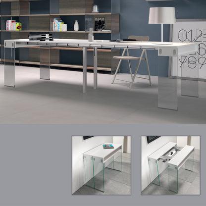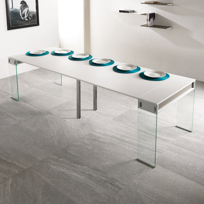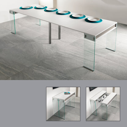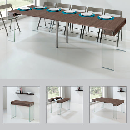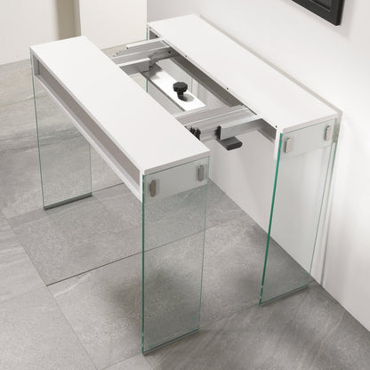 The sides, boasting 10mm thick tempered neutral glass, contribute to the console's visual lightness and transparency. The extendable guides, meticulously crafted from aluminium, exemplify the console's commitment to both durability and functionality. Transforming effortlessly into a comfortable table when needed, this modern marvel adapts to various aesthetic preferences with its availability in different finishes. The carefully selected materials not only ensure the console's robustness but also promise longevity that surpasses the industry average. The City Extendable Console is a testament to the fusion of style and substance, catering to diverse functional and aesthetic requirements.