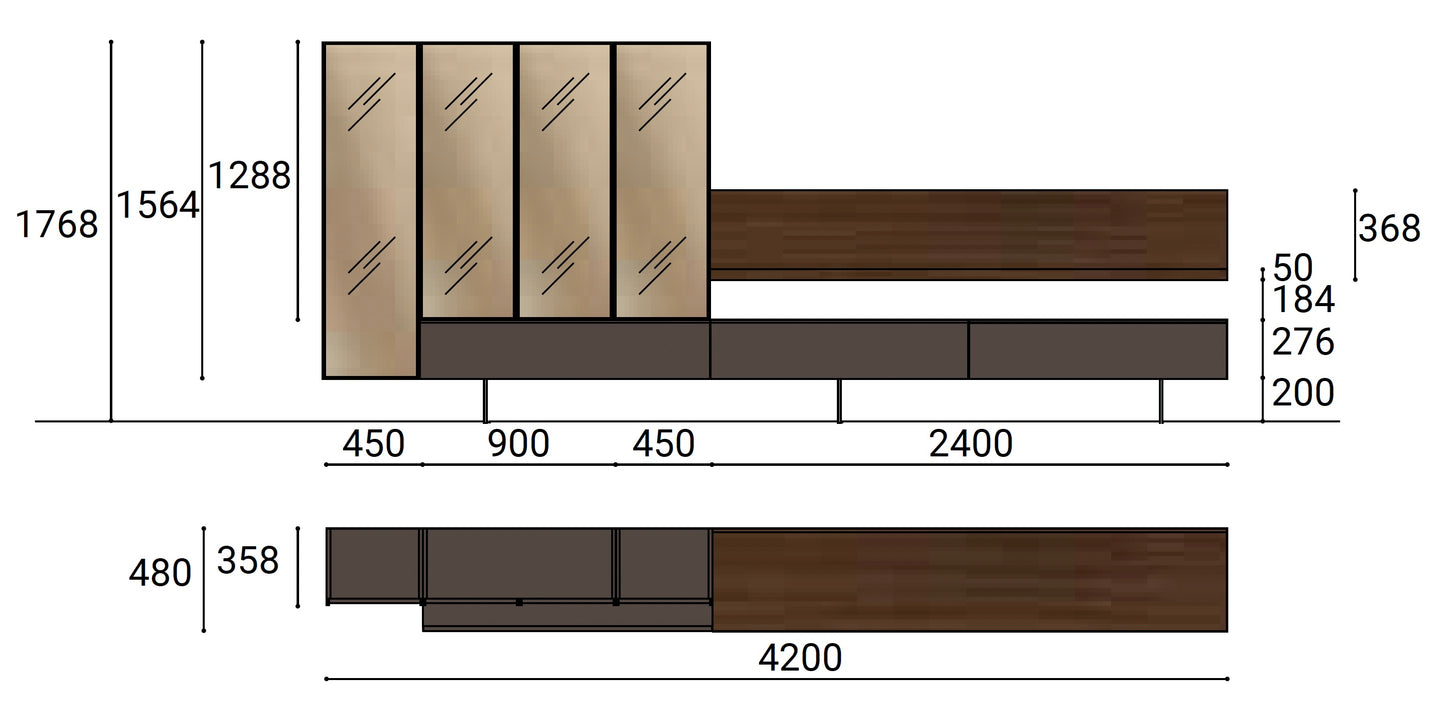 - Dimensions: L 4200 × H 1768 × W 358–566 mm