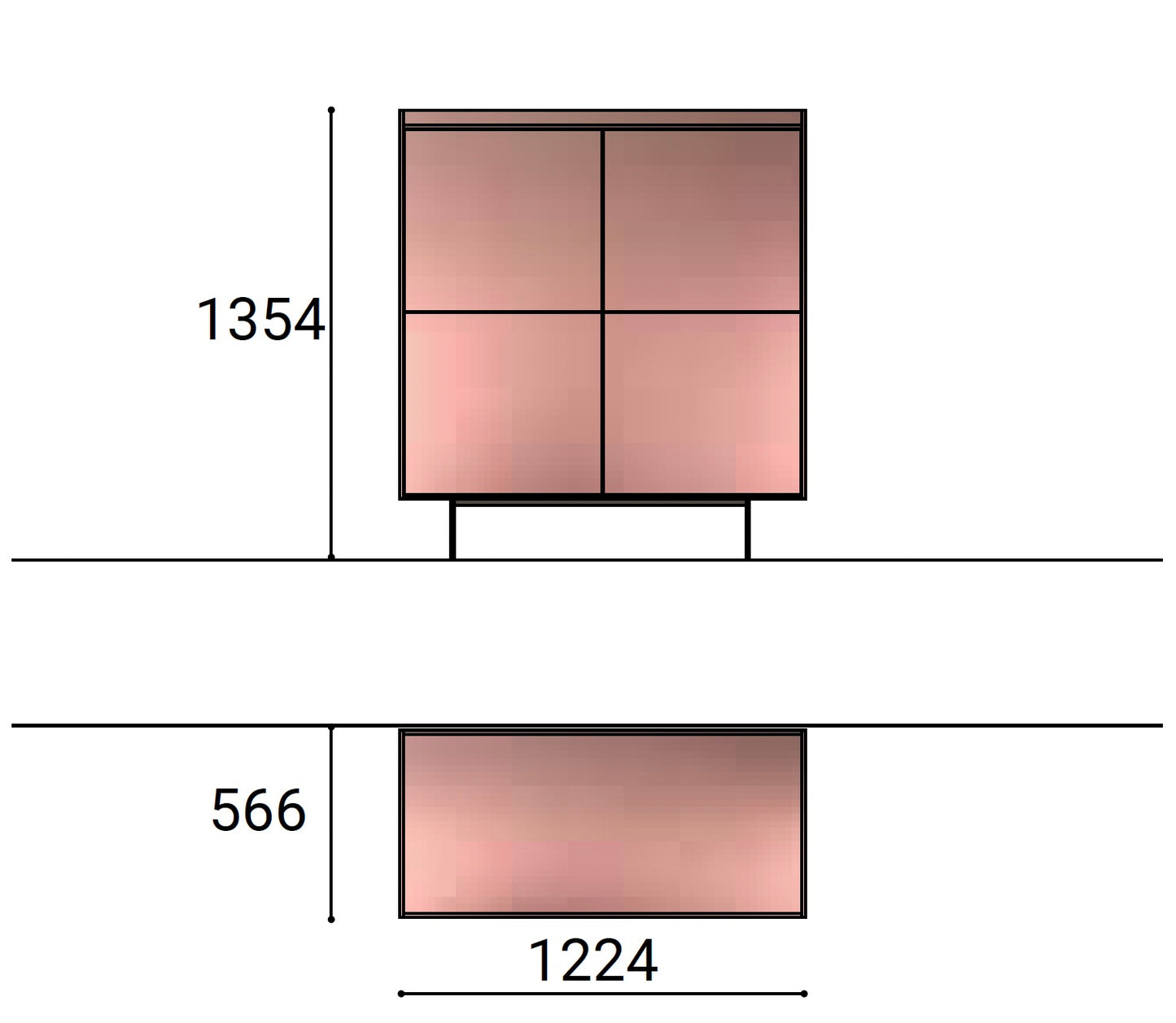 - Finish shown (images): Tray sideboard in Copper metal lacquer with Kako base in Copper metal lacquer; base units in Tufo matt lacquer