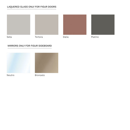 4. Finishes Available: Wood, neutral and coloured melamine, Dekor, laminate, glass panes, lacquered glass (for Figur doors), mirrors (for Figur sideboards)
