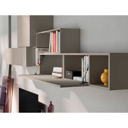 The Light Day 19 TV Media Unit with Studio Desk by Orme Design is a refined composition from the Light Collection, blending Italian modular craftsmanship with modern functionality. This versatile unit combines media storage, display shelving, and a practical integrated desk, making it ideal for living rooms, studios, or multifunctional spaces. Presented in Cotto wood, Tortora, and Dalia melamine finishes, it embodies a stylish balance of sophistication and utility.