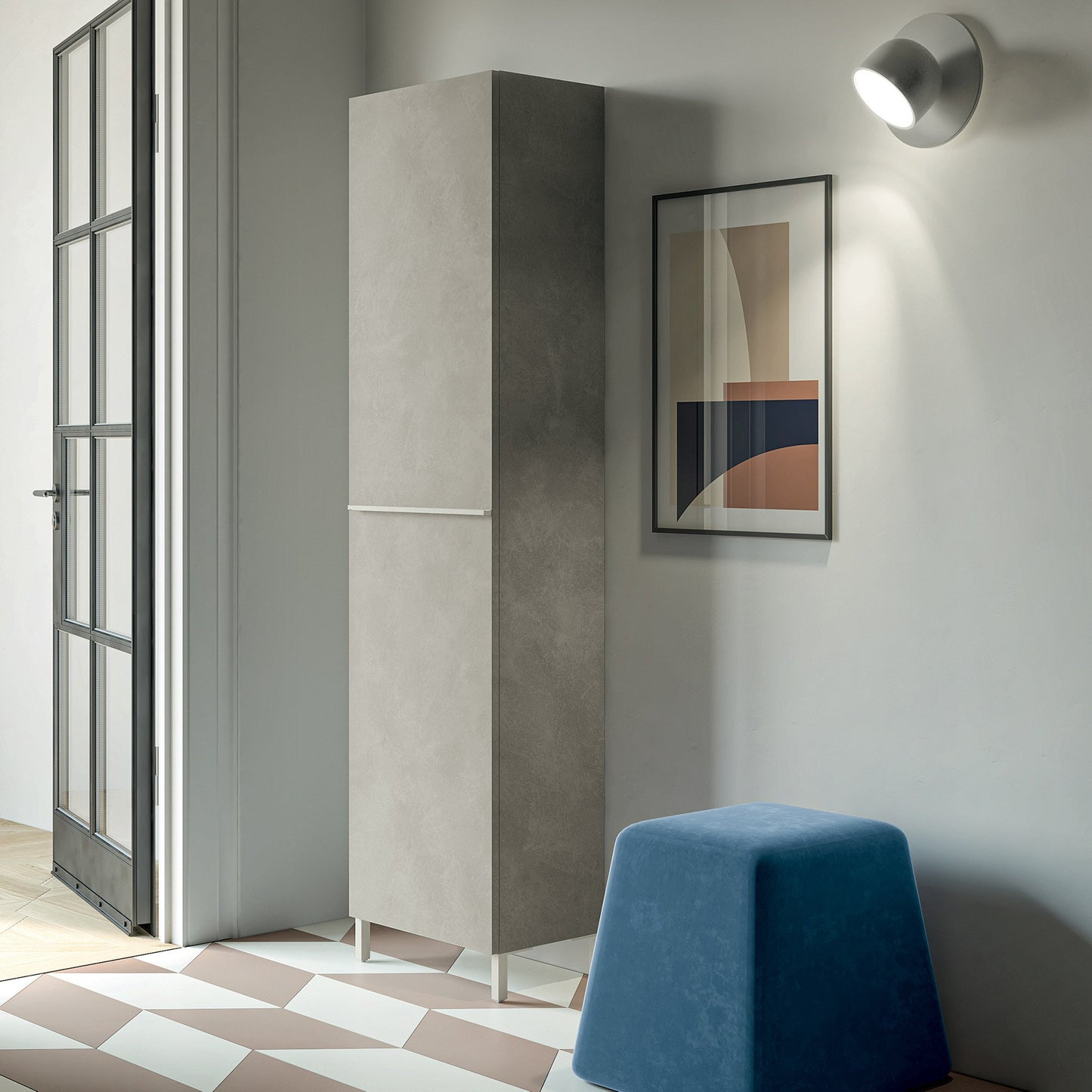 - Finishes in the picture: Structure and doors in Perla Cement Lacquered effect, Handles in Matt lacquered Ghiaccio 9002