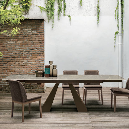 The Taurus presents a symphony of possibilities, with options like the matt Fiordibosco, Sand, Calacatta, or the lustrous gloss Carrara, Alabaster, Arabesque, and Emperador porcelain gres finishes, each imbuing spaces with a unique ambience. Whether opting for the extendable versions in sizes 160 or 180cm or the fixed 180, 200, or 230cm configurations available in rectangular or barrel shapes, this table adapts effortlessly to diverse needs and spaces. Please contact us directly for a bespoke quotation.