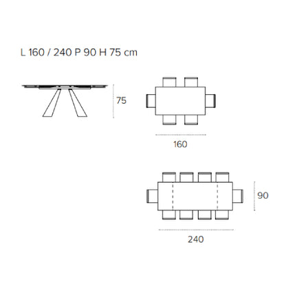 - Dimensions (Small): L 160-240 H 75 W 90 cm
