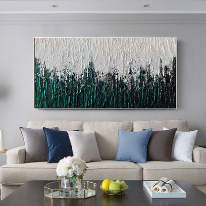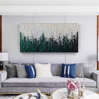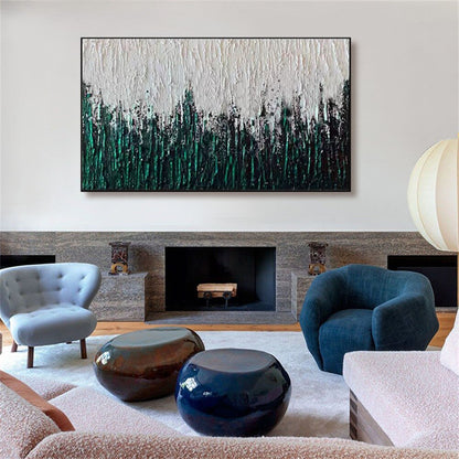 Made with a beautiful textured combination of bright green and white colours, this abstract painting is the perfect element to enhance the decor of your living room. Unique painting available in various sizes that brings style and personality to any home.