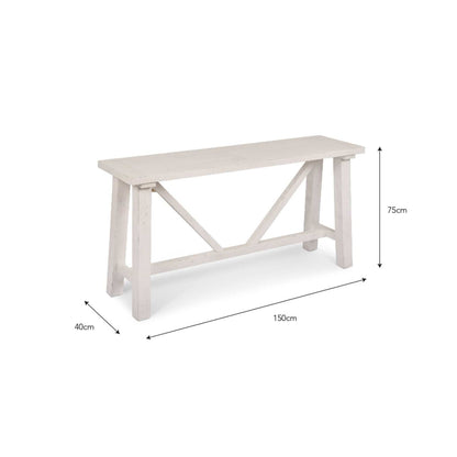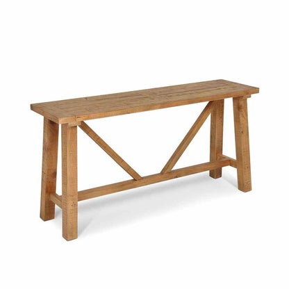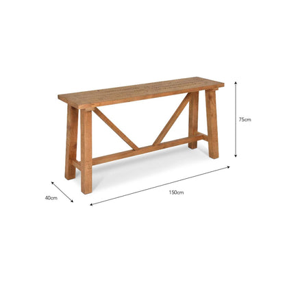 Exhibiting a blend of sophistication and simplicity, our Ashwell Console Table seamlessly enhances various spaces, whether adorning an open hallway, serving as an elegant dining room side table, or bringing charm to a kitchen setting. Meticulously fashioned from reclaimed pine and treated with a delicate stain, this console table embodies timeless appeal. Its versatile design makes it an ideal surface for organising the day's mail, safeguarding house keys, and displaying a delightful vase of flowers. A welcoming gesture for family members returning from work or school, the Ashwell Console Table effortlessly combines practicality with aesthetic finesse.