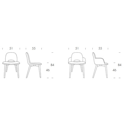 The Beetle chair epitomises a perfect fusion of practicality, comfort, and refined design. Its slender and lightweight metal structure version exemplifies modernity and functionality, seamlessly integrating into contemporary spaces. On the other hand, the wooden base variant exudes a sense of nobility and elegance, adding a touch of sophistication to any environment. The chair's versatility is further highlighted through a myriad of combinations and finishes, each contributing to an overall aesthetic that is both visually pleasing and remarkably comfortable.