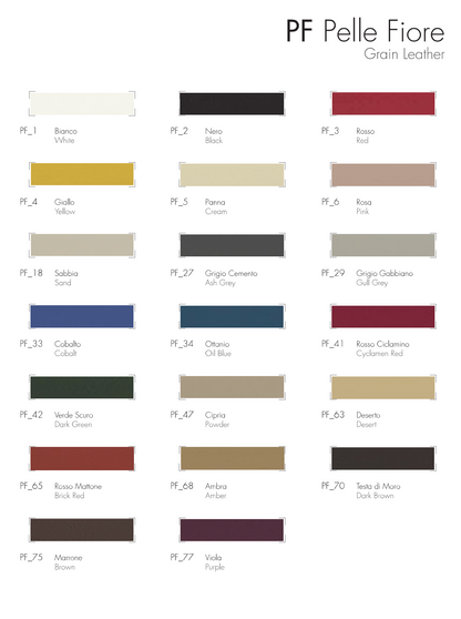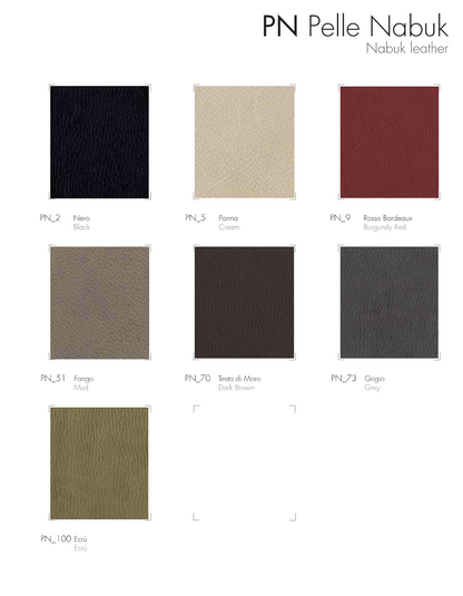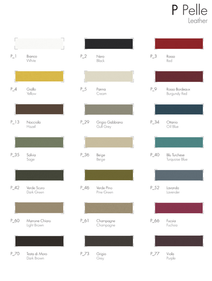 - Finishes in the picture: Structure: Carbon Grey 10 and Chromed Metal 72 Covering: Cream P05, Black Leather P02, Dark Brown S70 and Dove Grey Eco Leather S60
