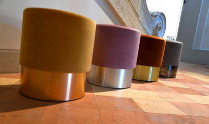 The Chione Midnight Blue Pouf, crafted by Domingo Salotti, epitomises understated elegance fused with regal charm. Part of the Chione Collection, this cylindrical pouf boasts a refined design that effortlessly blends into any interior aesthetic. The timber frame provides a sturdy foundation, while the laminate base, adorned with a brilliant brass finish, adds a touch of opulence. The overall effect is a seamless integration of sophisticated style and regal hues, making it an exquisite addition to contemporary or classic living spaces.