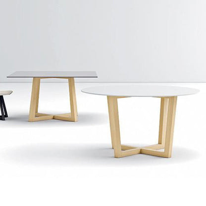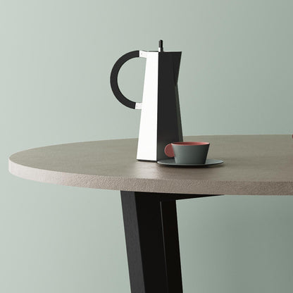 Available in multiple tabletop variants including HPL, wood, and a cement-like material, the versatility of this table invites personalisation to suit individual tastes and preferences. A defining feature of this table lies in its innovative double-opening mechanism, allowing for flexible adjustments based on spatial needs. The base can be effortlessly manoeuvred either upwards or downwards, presenting an adaptable solution for various dining or gathering settings.