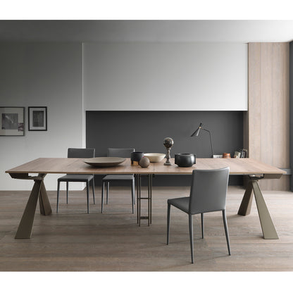 - In the picture: Genesi 95-145-195cm with structure in Embossed Lacquered Bronze M19 and Top in Melamine Knotted Caramel Oak N35