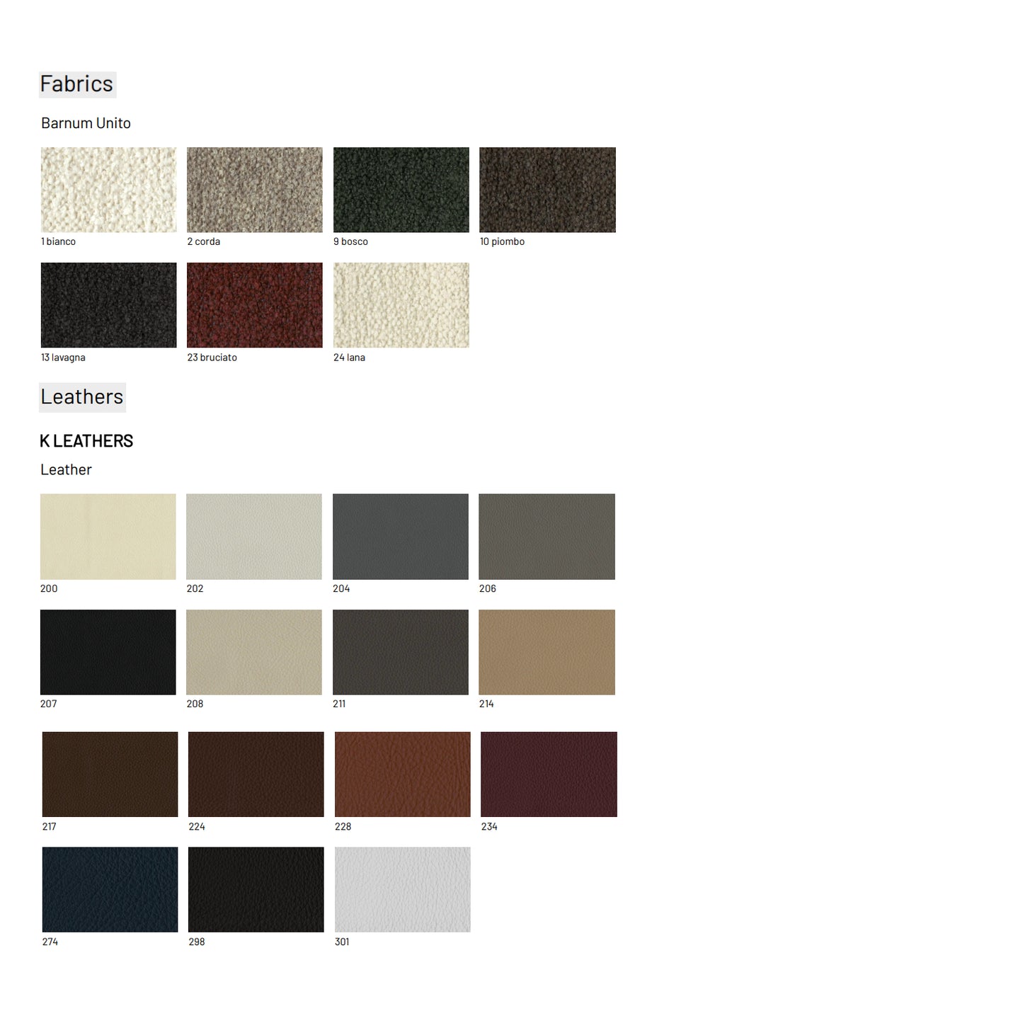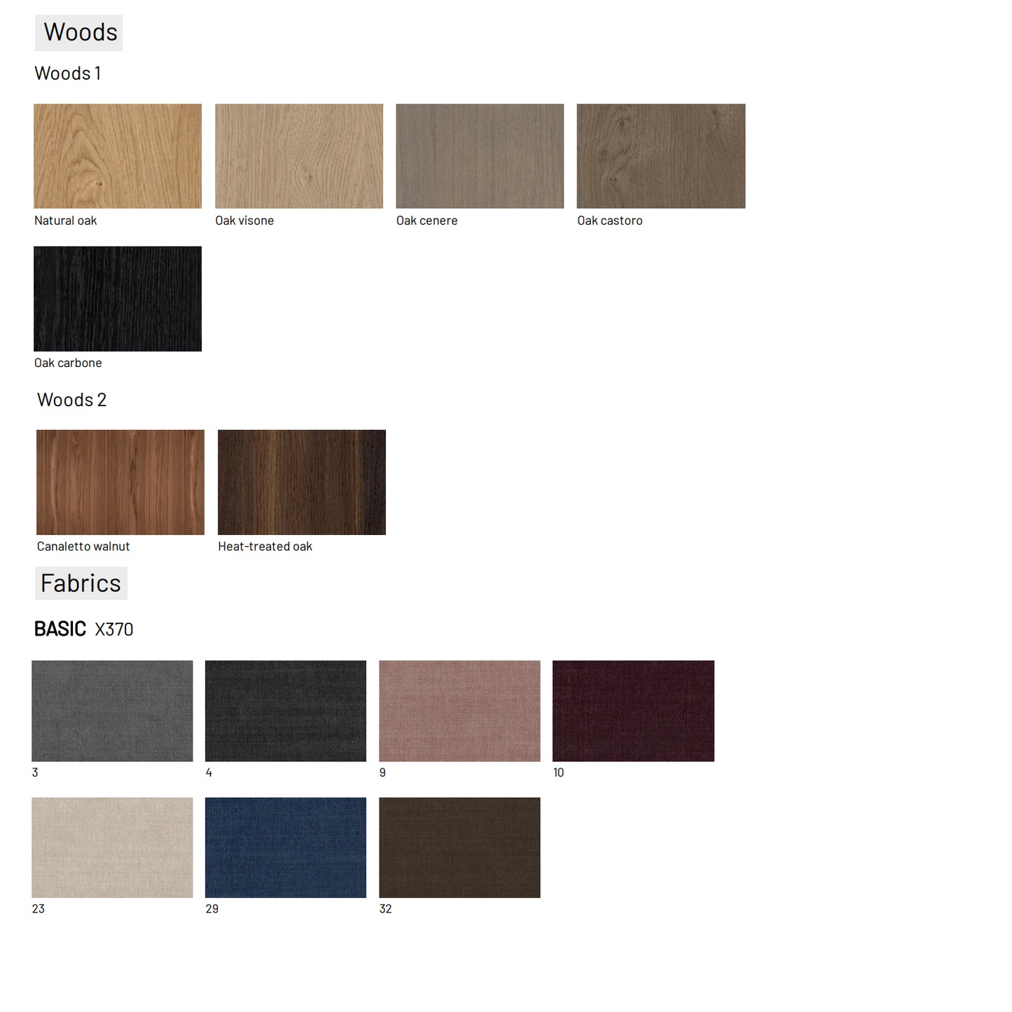 - Headboard and Frame: Available in all the categories on the Materials and Finishes catalogues
