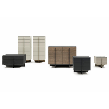 Katana collection by Dall'Agnese. A versatile and modern group of bedroom furniture for your contemporary home. The bedside table is available with 2 or 3 drawers in length 45, 60 or 90cm and height 45, 52.5 and 60cm. The metal structure that looks like a Japanese Katana sword runs up the entire unit and serves as a practical handle. Top is available in different ceramic stoneware finishes or in wood.