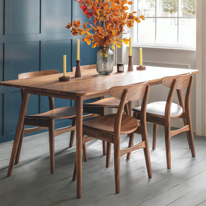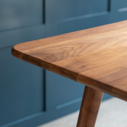 Discover the essence of timeless sophistication with the Kersoe Dining Table. Meticulously fashioned from exquisite solid walnuts, this piece embodies elegant simplicity. Its sleek, tapered legs and spacious surface comfortably accommodate four to six individuals, making it a versatile centrepiece for any dining space. Infusing a room with a rich, natural allure, the table effortlessly harmonises with various decor styles, promising a warm and inviting ambience.