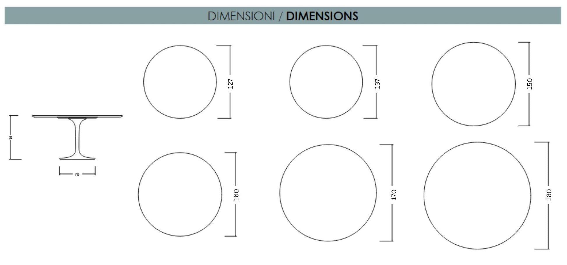 - Ø 137 cm – Posti a sedere 6–7 commensali