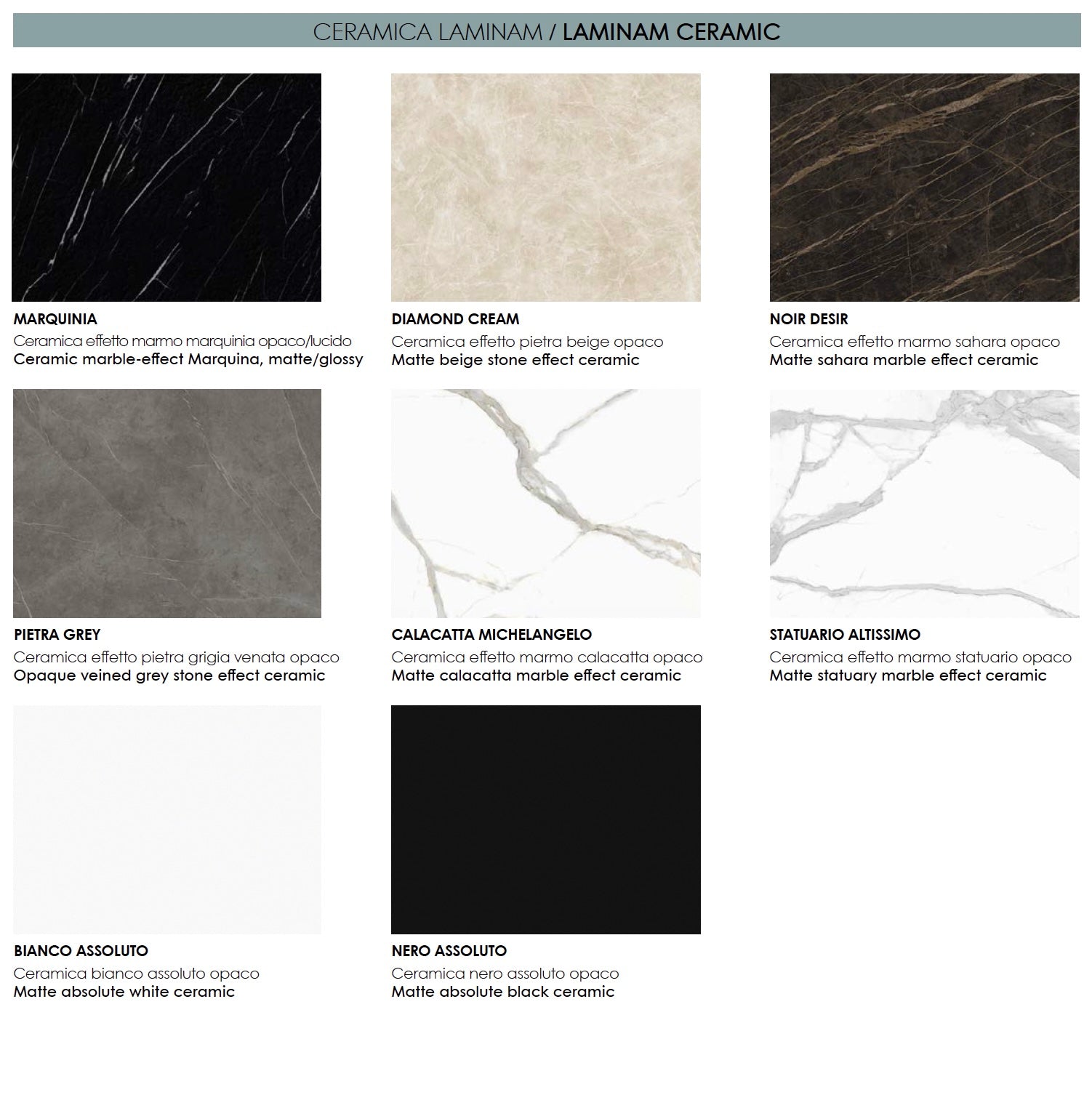 - Laminato Liquido (25 mm) – MDF laccato bianco, nero, grigio o qualsiasi colore RAL. Finitura semiopaca rinforzata con microsfere di vetro per una maggiore resistenza ai graffi e un ridotto assorbimento di liquidi.