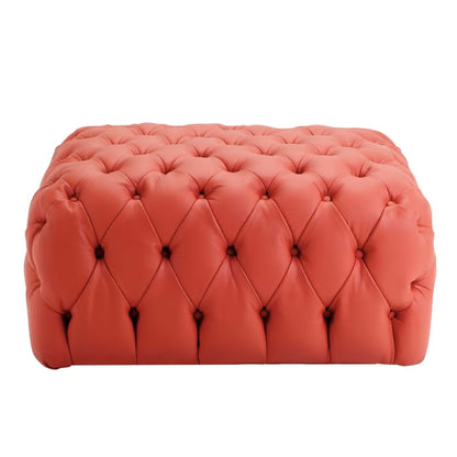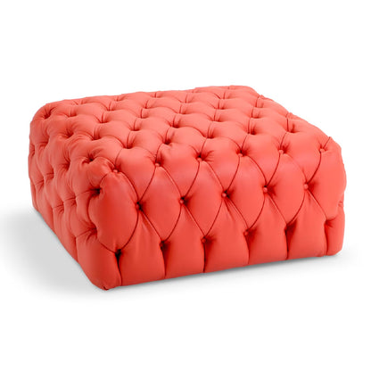 The sturdy plywood and fir frame ensure longevity, while the multi-density polyurethane foam upholstery adds a layer of plushness. The red dacron wrapping, complemented by meticulous button tufting, showcases the pouf's attention to detail and commitment to style. Whether placed in a traditional living room, a cosy lounge, or a stylish walk-in closet, this pouf is a statement of refined taste, bringing both comfort and sophistication to your space.