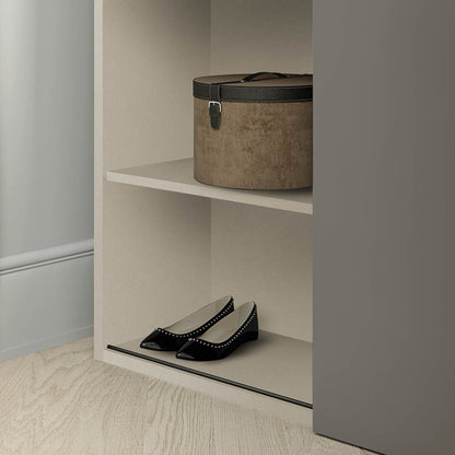 Efficiency meets elegance with the Skap Composition 3, featuring a unique door configuration. A sleek sliding door on the left side adds a touch of contemporary flair, while two hinged doors on the right provide convenient access to ample storage space. The versatility extends to the finish options, with one of the doors available in a striking natural, fume, or bronze finish, adding a subtle touch of personalisation to this stylish entryway solution.