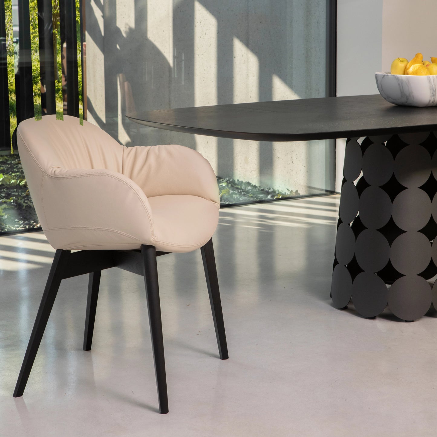 The aesthetic appeal of Olympia Wood is marked by its sophisticated design elements. The slender legs, available in both metal and wood with various finishes, offer a sleek and modern touch, complementing any interior decor. The soft, sinuous lines of the seat are not just visually appealing but also ergonomically designed to provide maximum comfort. This harmonious blend of materials and shapes creates a distinctive piece that stands out in any space, adding a touch of elegance and modernity.