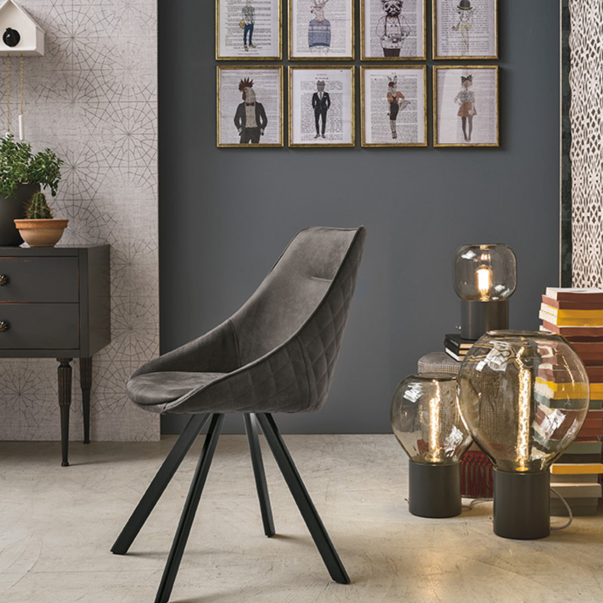 The BILBAO chair is upholstered in either Vintage Soft-Touch fabric or a luxurious velvet-effect microfibre, providing a plush and inviting seating experience. The carefully chosen materials ensure durability and ease of maintenance while exuding a sense of refined elegance. The chair's painted metal structure adds a touch of industrial chic, enhancing its overall appeal and making it a versatile addition to any room. Whether you're looking to create a cosy reading nook or a stylish dining area, the BILBAO chair is designed to make a statement.