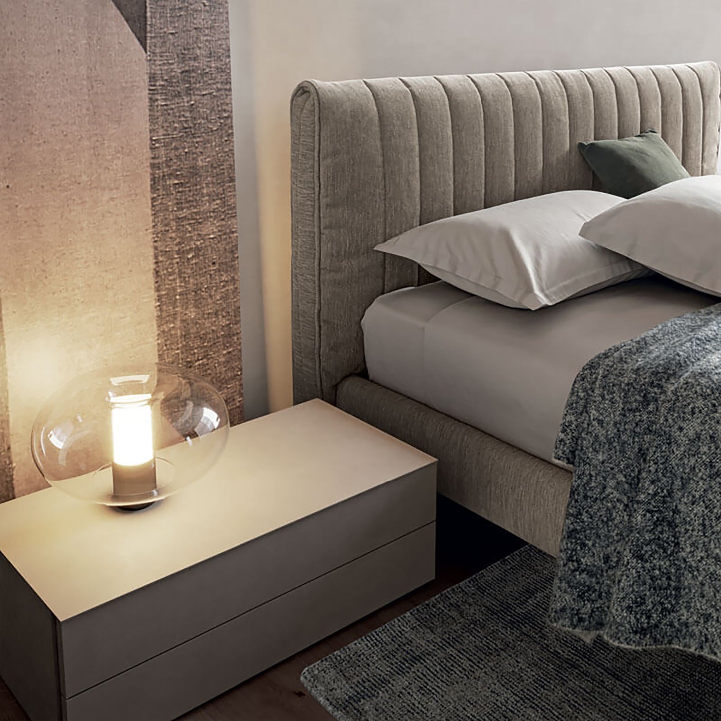 Upholstered Bed in Fabric or Eco-leatherTransform your bedroom into a haven of elegance with our exquisite Goose headboard. Enveloped in a sumptuous quilt, it exudes luxury and comfort. Crafted from high-quality fabric or eco-leather, its duvet-like texture invites you to sink into serenity. The intricate vertical quilting adds a touch of sophistication. Customise your style with matching or contrasting side details for a personalised touch. Experience the perfect blend of style and comfort with our Goose headboard.
