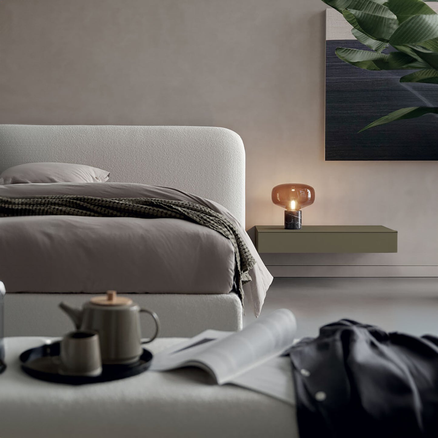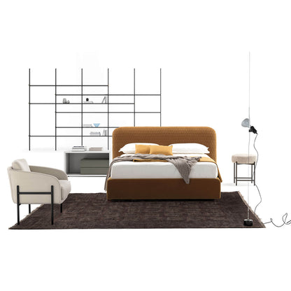 Customize your upholstered double bed with fabric, leather, or eco-leather finishes from Dallagnese. Choose from a variety of options to match your style. The bed features a wide and plush headboard that can be made to stand out with a base container or appear more streamlined with slender feet.