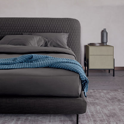 - HEADBOARD: Internal structure made of honeycomb wood and CARB-2 certified medium-density wood, upholstered with polyurethane foam and bonded fabric. The headboard in the quilted version features a front drop-shaped pattern.