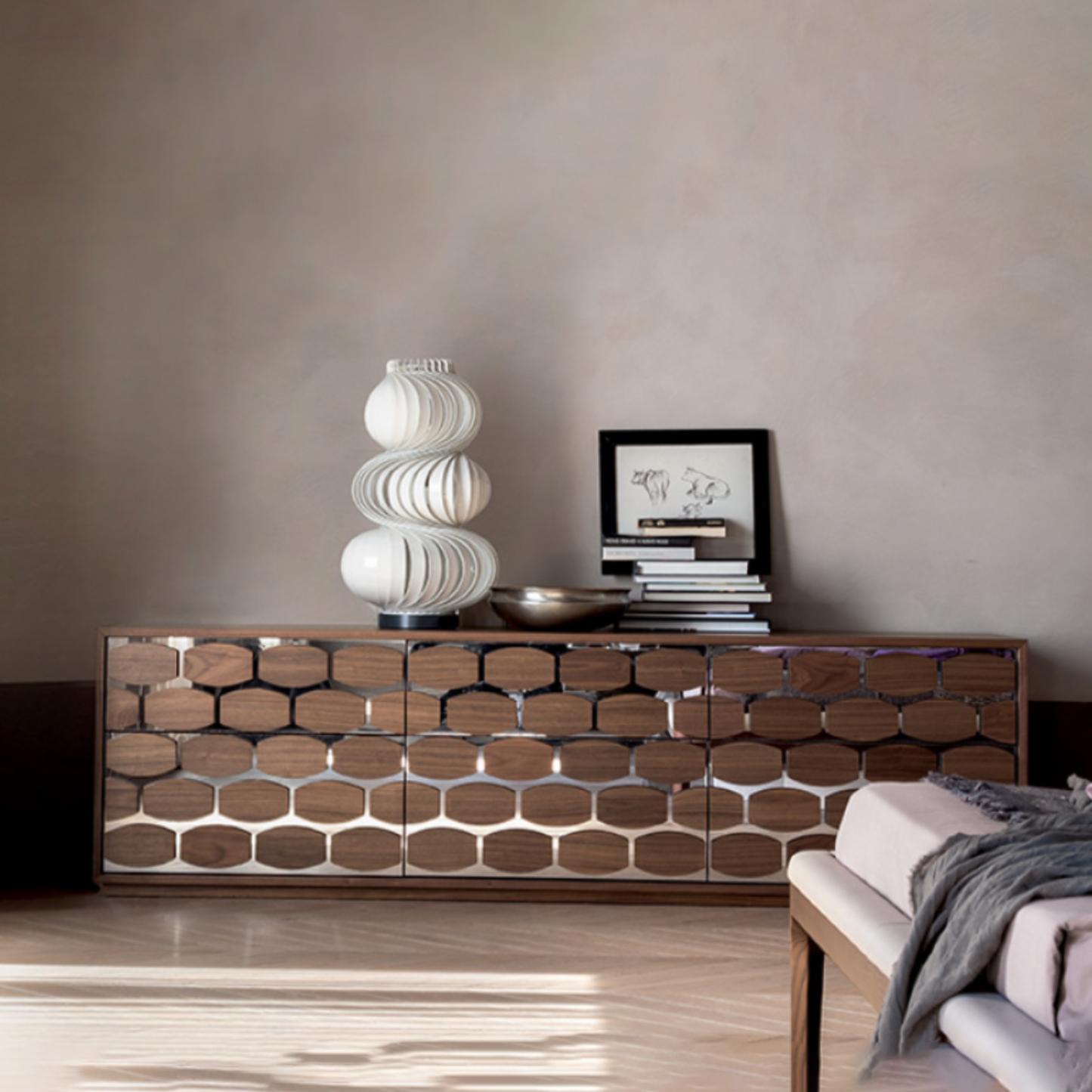 A perfect example of the Italian artistry and craftsmanship, the Honey chest of drawers by Tonin Casa is a piece of furniture that stands out for its uniqueness. Replicating the shape and texture of honeycomb, Its simplicity and exquisite choice of materials make this sideboard a statement piece for every living space and an elegant work of art to complement every style choice.