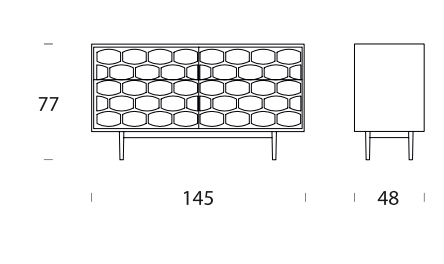 - Dimensions (2 Drawers): L 145 H 62-77 W 48 cm