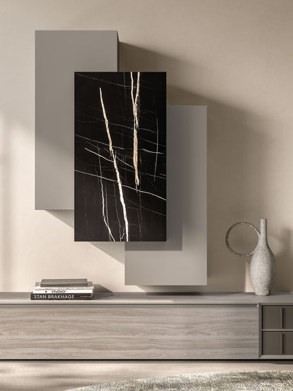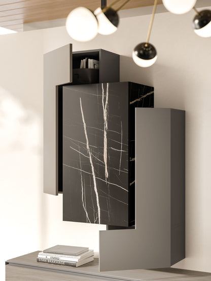 - Elegant mix of Titanio matt lacquer, Tunisi melamine and Ossidato textures.