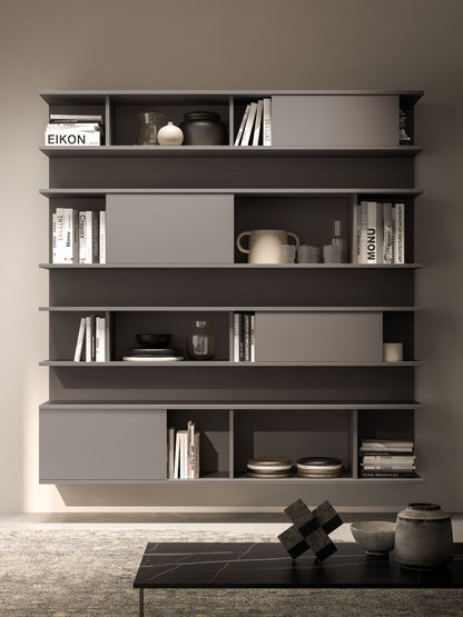 - Finish shown (images): Air / Elle units in Titanio matt lacquer; Modulo wall unit in Tunisi melamine