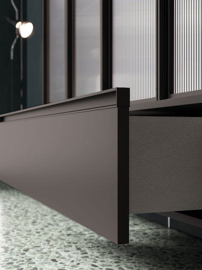 - Finishes available: Material Melamines, Neutral, Decor, Marbles, Veneered, Leather, Matt & Gloss Lacquer, Line Front, Metallic & Brushed Metallic Lacquers, Cement, Glasses, Silk-screened Glasses, Mirrors