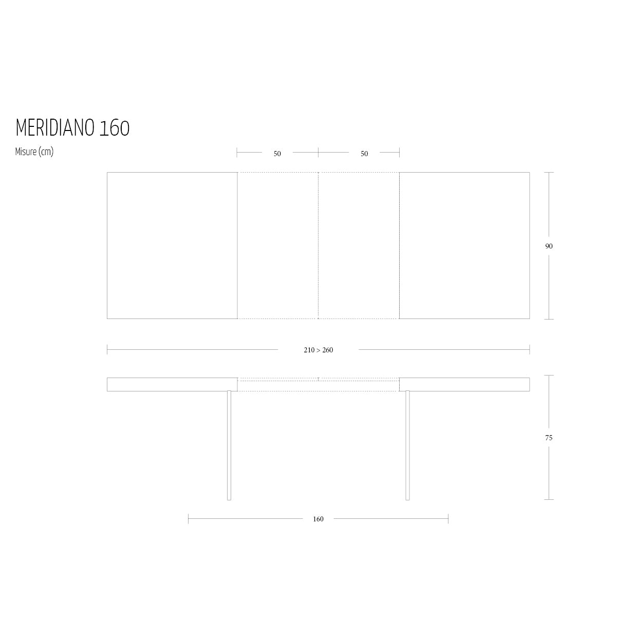 - Meridiano 160: L 160-260 H 75 W 90 cm
