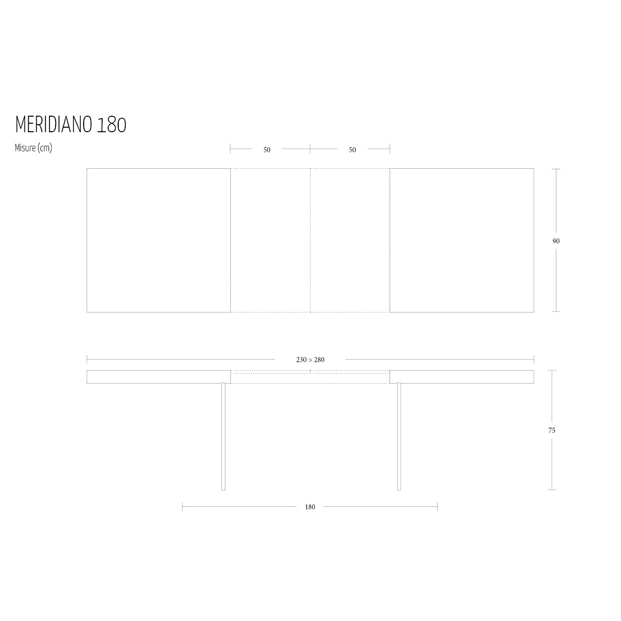 - Meridiano 180: L 180-280 H 75 W 90 cm