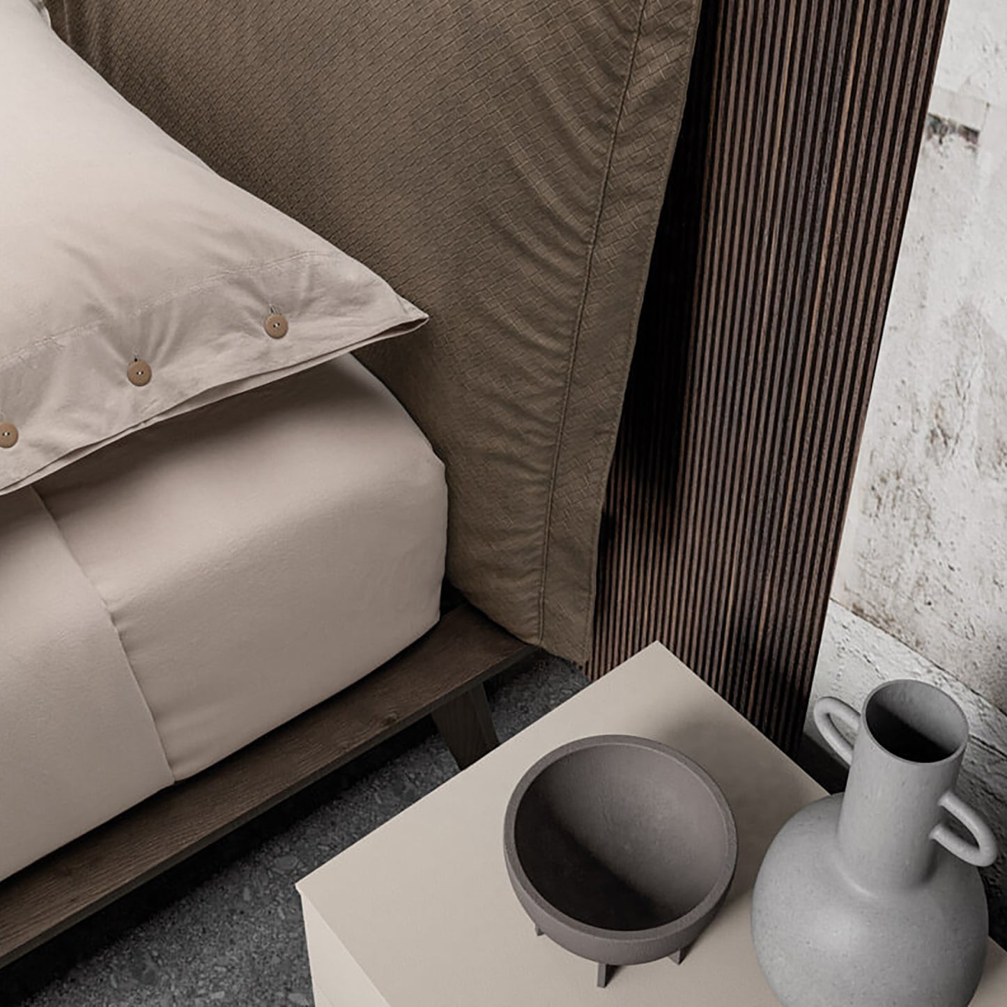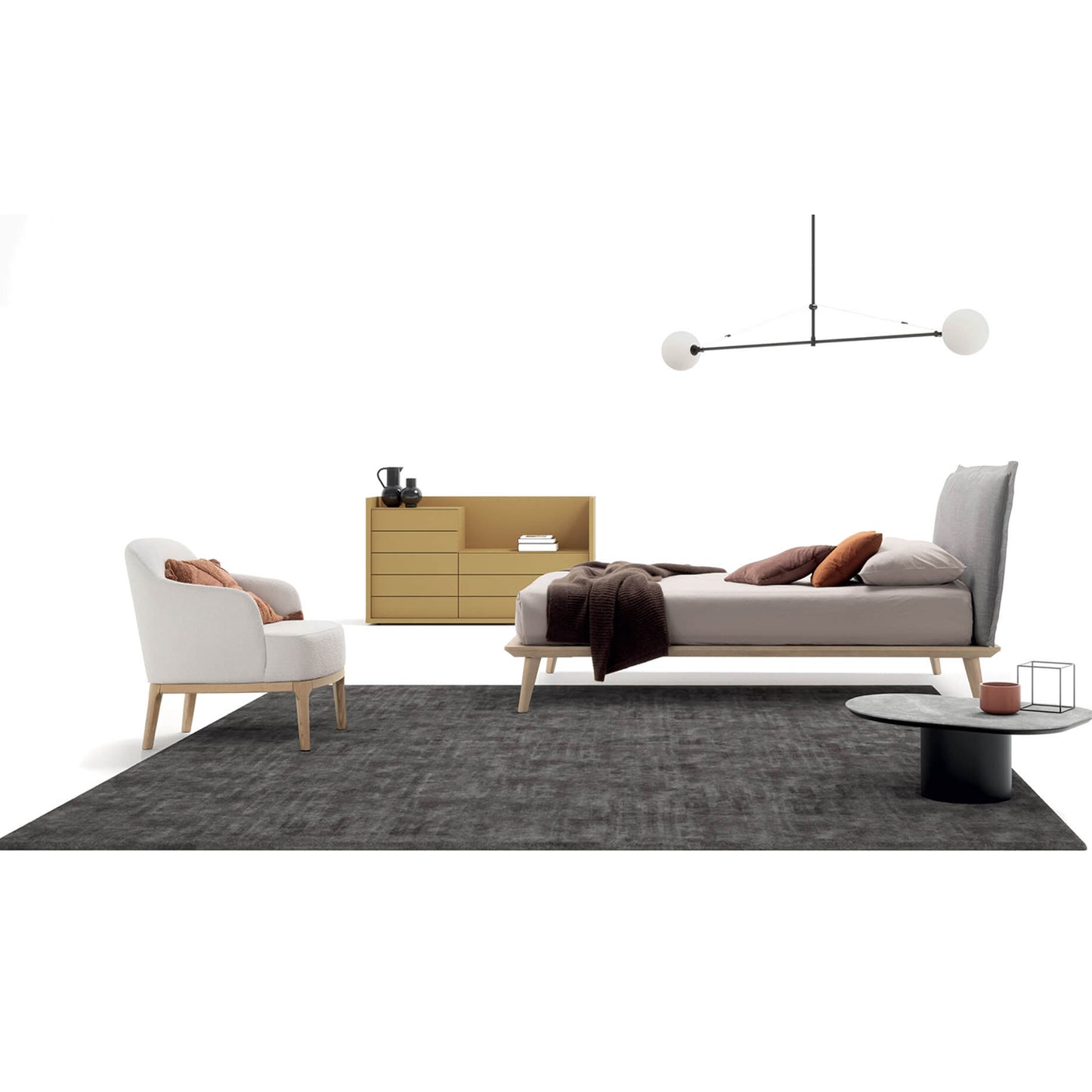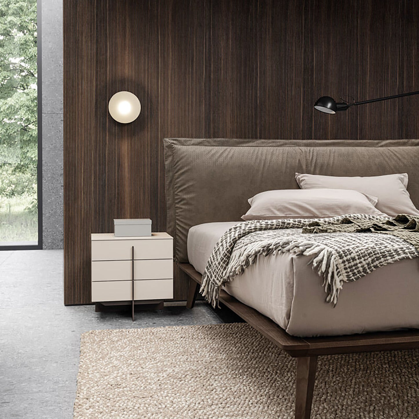 Contemporary Bed DesignMorgan is a modern yet timeless bed. Its wooden frame has a unique slanted section and curved feet, giving it a sense of motion and lightness. Crafted with precision, it showcases the fine artistry and Italian craftsmanship. Pair it with the sleek and minimalist Katana nightstand to enhance its character even more. Experience the perfect blend of style and quality with Morgan.