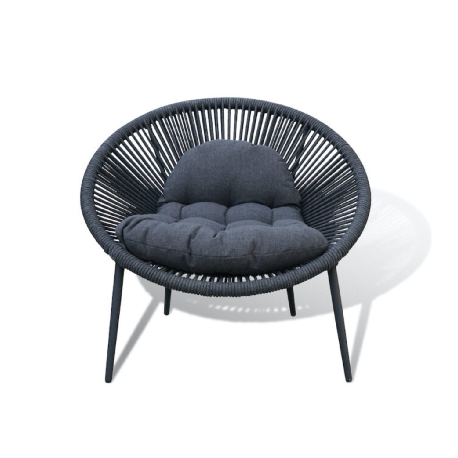 TThe Nancy Lounge Chair brings a fresh and contemporary look to your outdoor spaces. Designed with an elegant circular frame and handwoven rope weave, this chair adds a modern yet cosy touch to your patio, balcony, or garden. The durable aluminium legs provide stability and rust resistance, while the ergonomic deep-seated design ensures superior comfort. Complete with thick, tufted cushions, the Nancy chair is perfect for relaxing, reading, or unwinding in style.