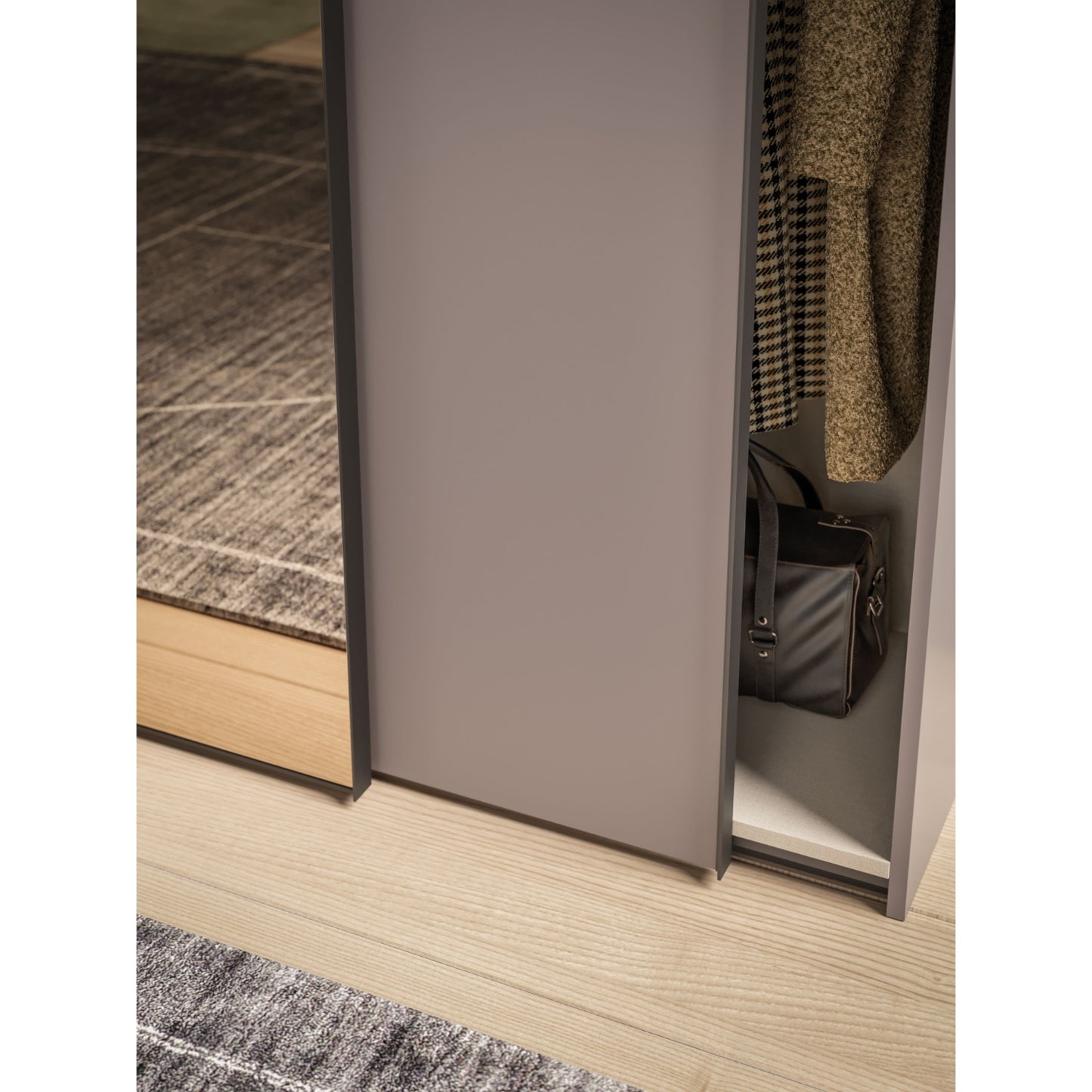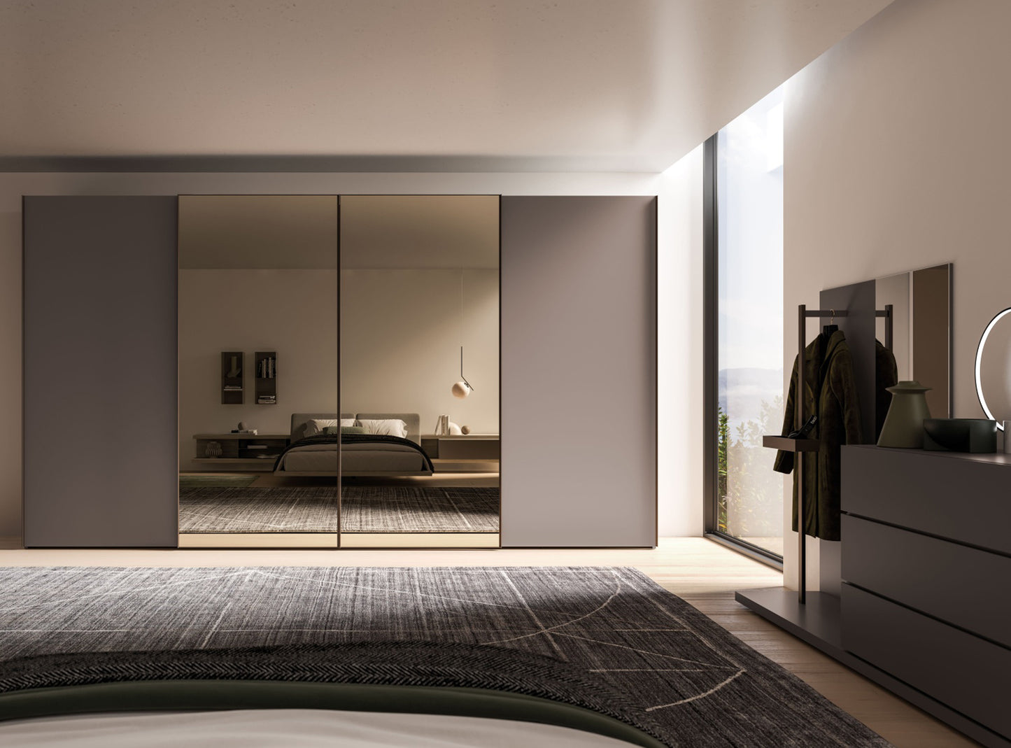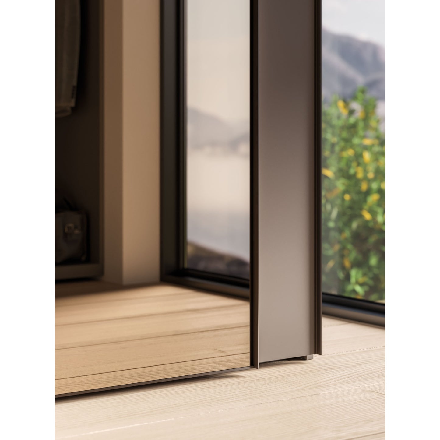 Overall, the Febe + Frame sliding wardrobe combination offers refined modernity: Argilla matt lacquer and bronzed glass provide a subtle contrast, while the Cotone-finished interior adds an inviting sense of calm. A timeless yet contemporary solution to keep bedrooms serene, organised, and beautifully finished.