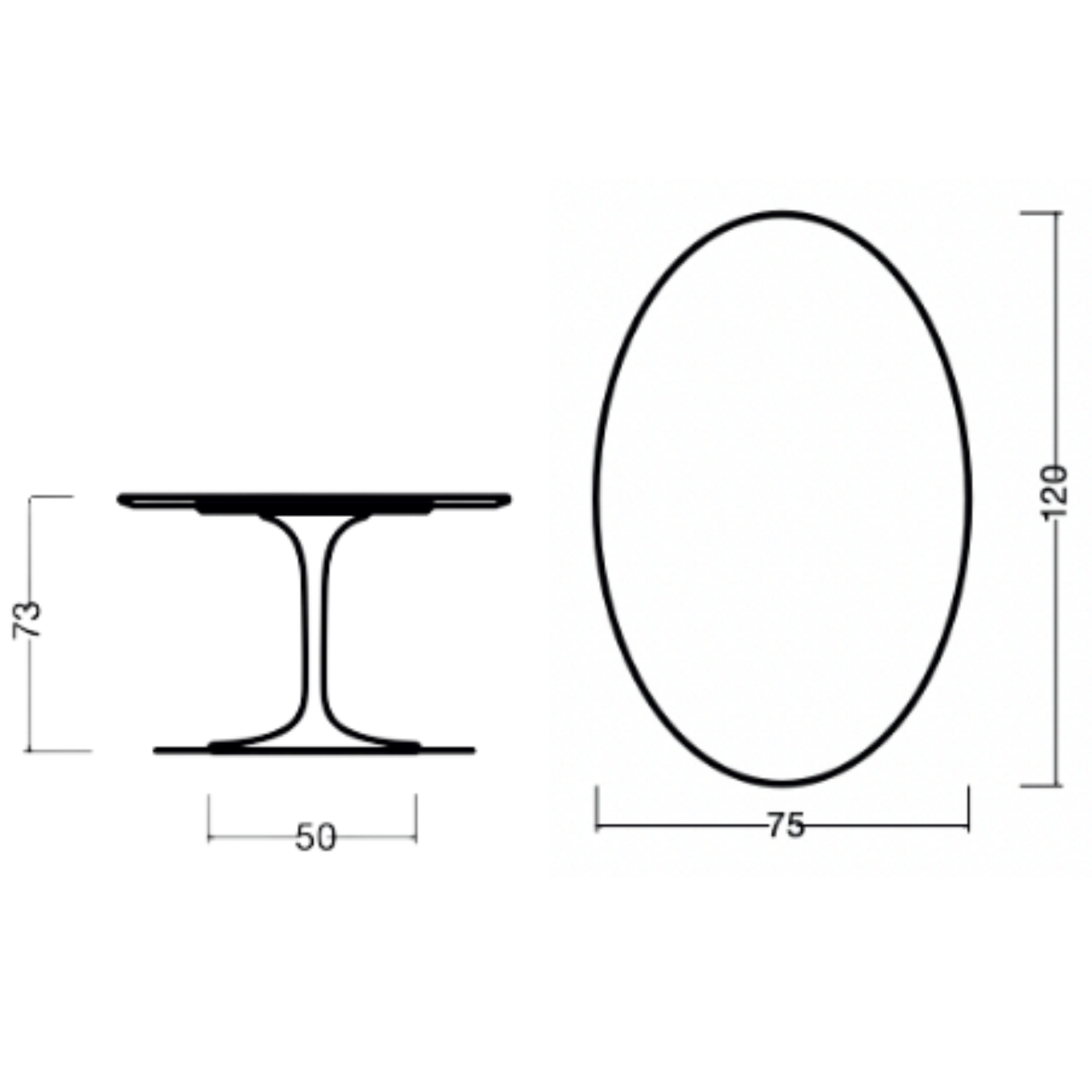 This Oval Tulip Dining Table with liquid laminate top is available in the following dimensions (L × D × H):