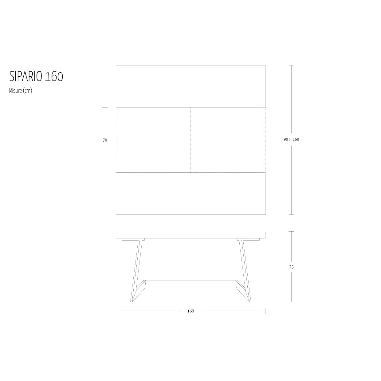 • Sipario 160: L 160 H 75 W 90-160 cm