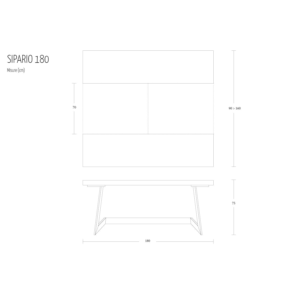 • Sipario 180: L 180 H 75 W 90-160 cm