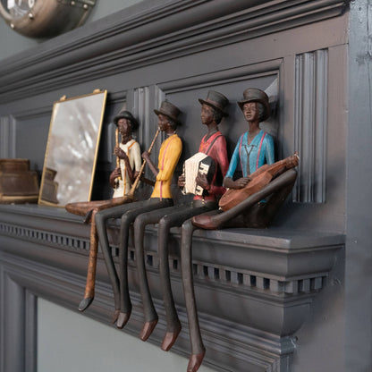The "Sitting Jazz Man" is a captivating and soulful sculpture that belongs to the esteemed "Sitting Jazz Band" collection. With one leg casually suspended over the edge of the surface, he maintains a perfect balance, demonstrating his mastery not only of his instrument but also of the art of sitting jazz. This pose allows him to engage with his audience intimately while delivering a performance that is as captivating as it is memorable.