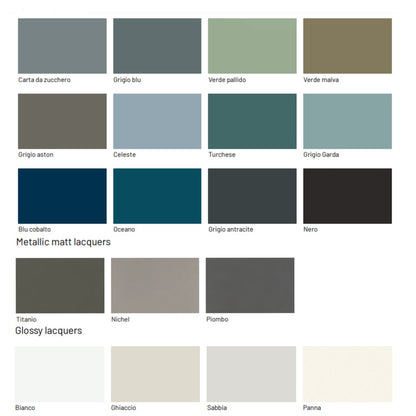 The listed price refers to a basic tallboy L60cm with 5 drawers in textured melamine without glass. The glass insert version, lacquer, or ceramic tops are available at a higher price.