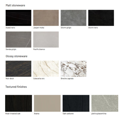 - Top Options: Optional lacquered, ceramic stoneware, or mirror top panels