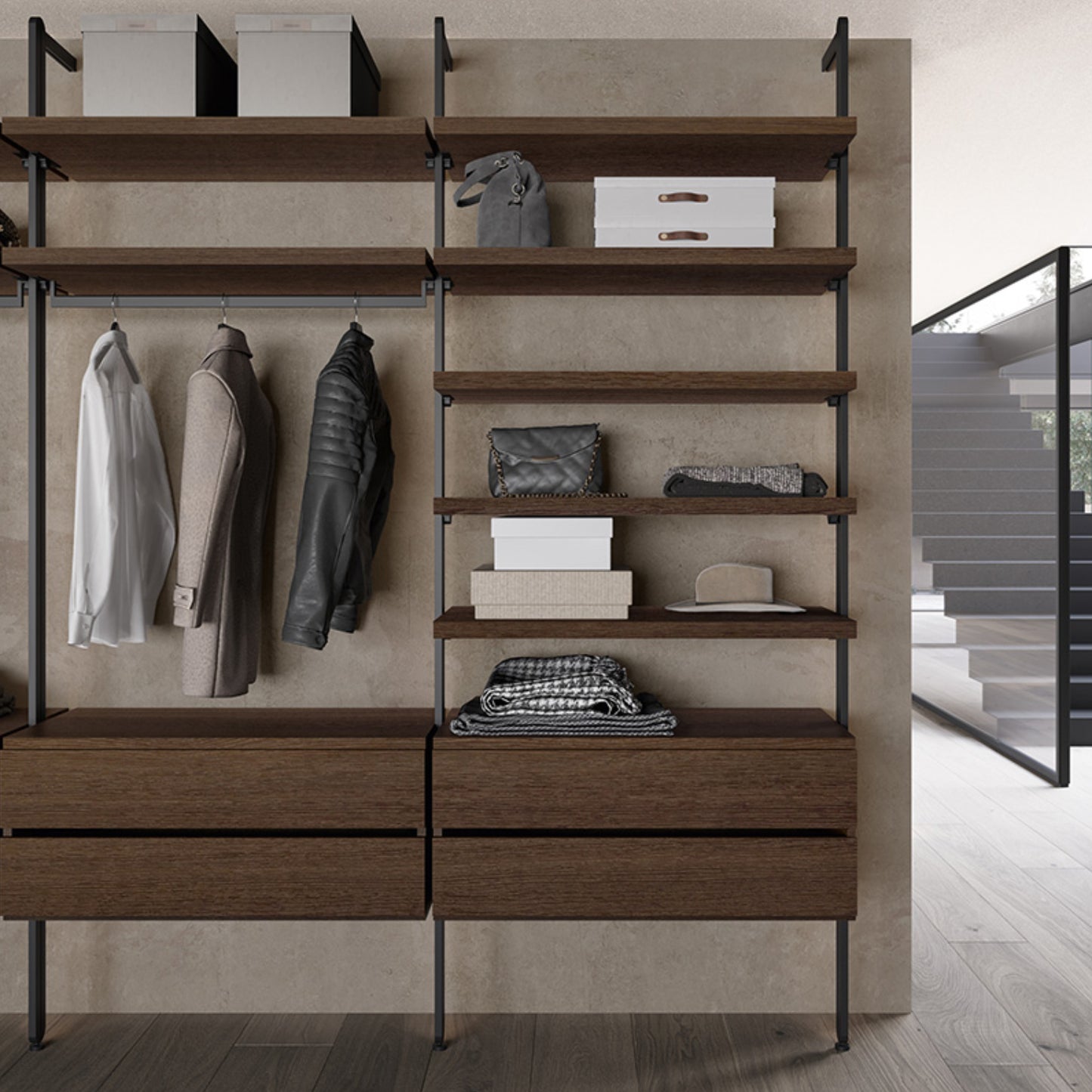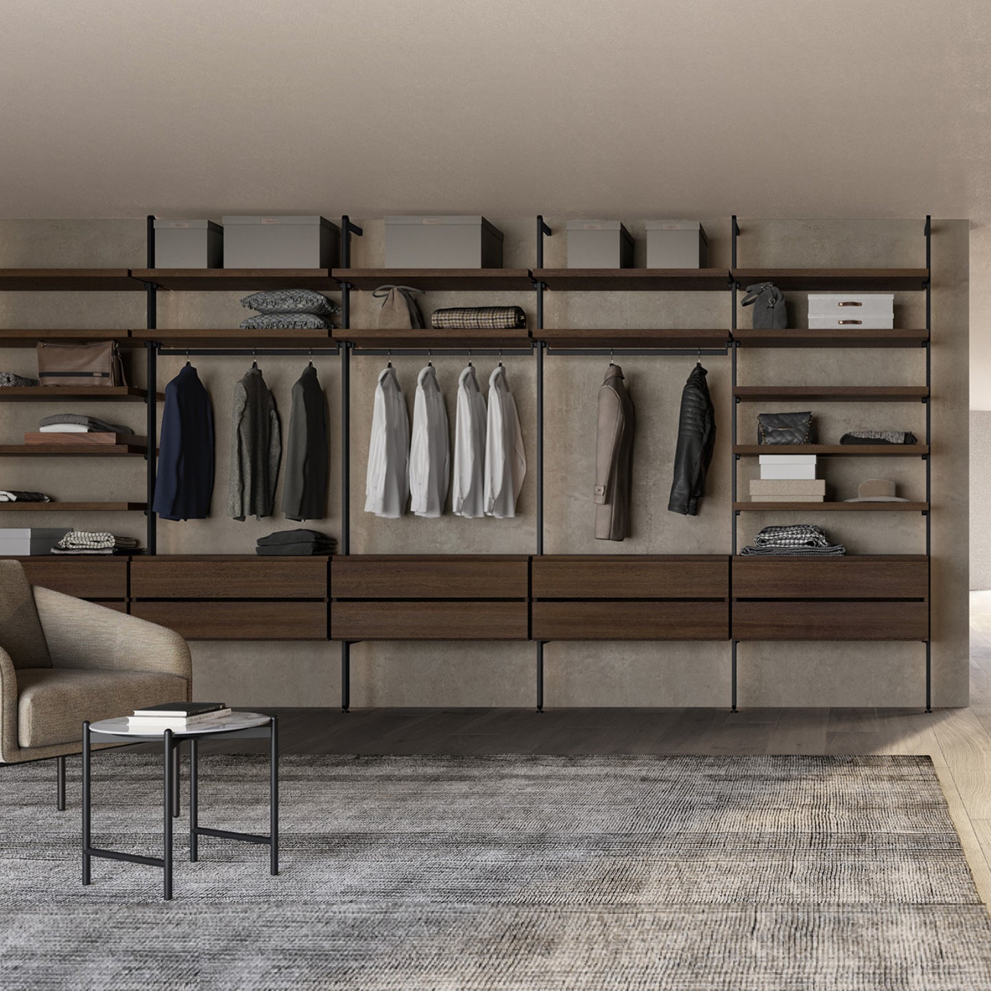 This closet system offers the flexibility to configure your storage solutions in a sustainable and stylish manner. The closet allows for endless compositions, enabling you to tailor it to your unique tastes and lifestyle. The Dall'Agnese Closet Collection offers stylish storage solutions that is customisable and adds a touch of sophistication to your living space.