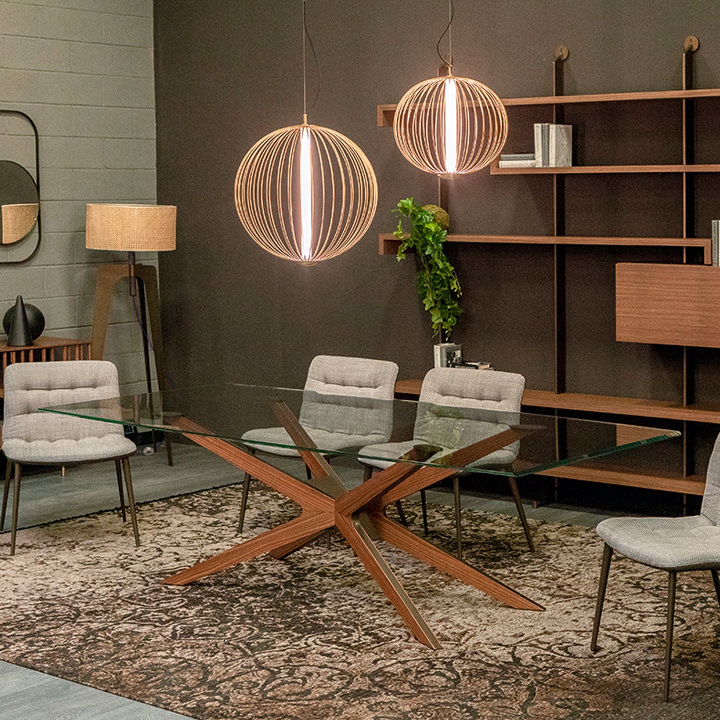 The Blade Dining Table effortlessly commands attention and takes centre stage in any dining setting, becoming the unequivocal protagonist of the scene. The harmonious blend of form and function in the Blade Dining Table is a reflection of Tonin Casa's commitment to creating furniture that transcends mere utility. The seamless integration of the single central base with the option of a wooden cover showcases the brand's dedication to both aesthetics and practicality.