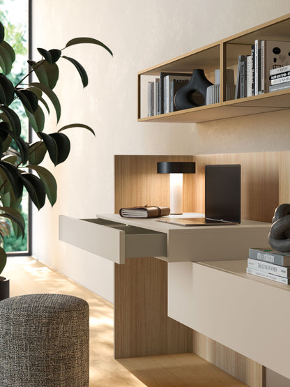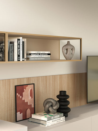 Warm, functional, and distinctly Italian. The Day 18-23 Modern TV Media Unit by Orme Design seamlessly integrates a desk and suspended TV base into a cohesive composition. Its warm chromatic palette and balanced lines create a stylish yet practical solution for modern living rooms.
