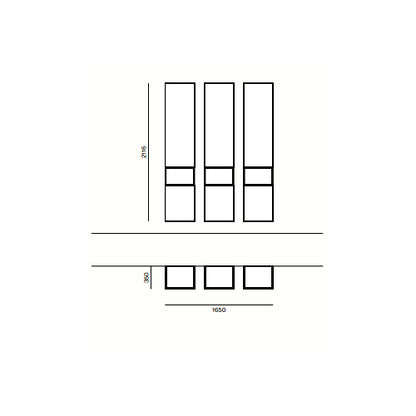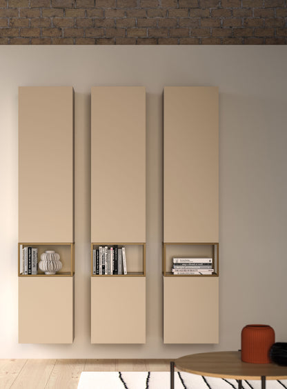 - Finish shown (images): Modulo hanging bases in Sabbia matt lacquer with Rovere textured panels